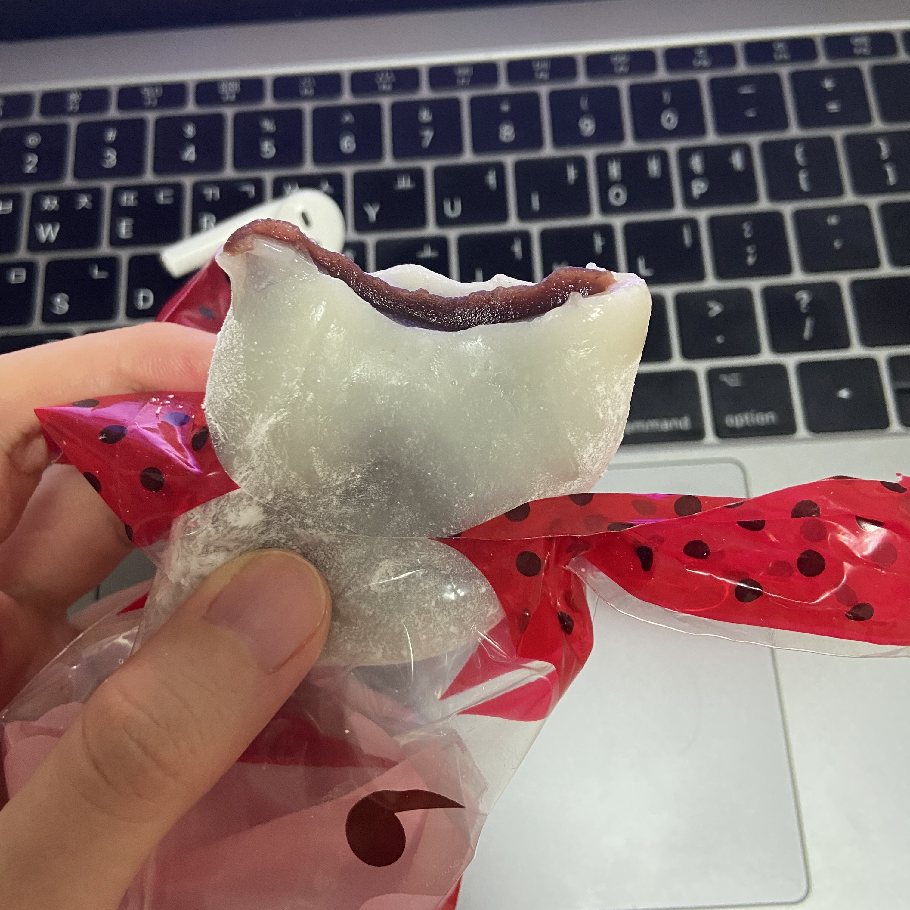 안에 과일이 들어간 찹쌀떡이라 빨리 먹어야지 그렇지 않으면